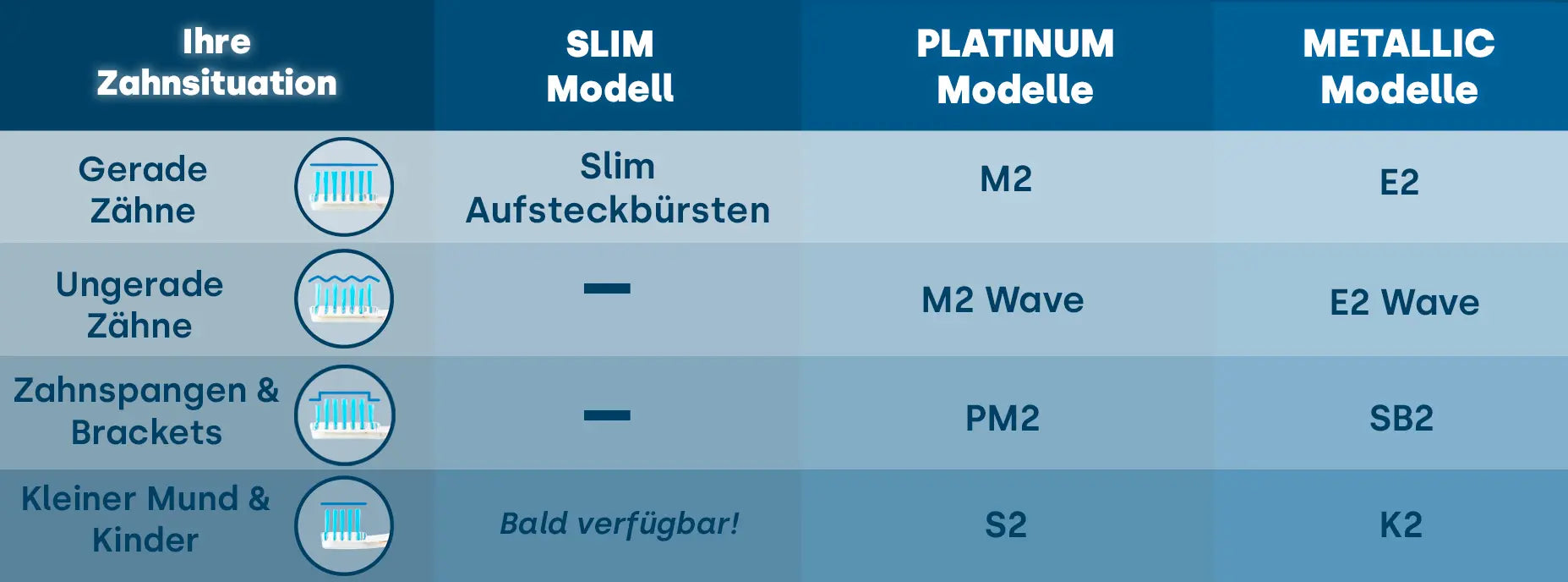 Wenn Sie das Premium-Modell emmi-dent Platinum nutzen, benötigen Sie Aufsteckbürsten mit einem 4-Pin-System, das speziell für diese Reihe entwickelt wurde. Zu den geeigneten Modellen zählen: