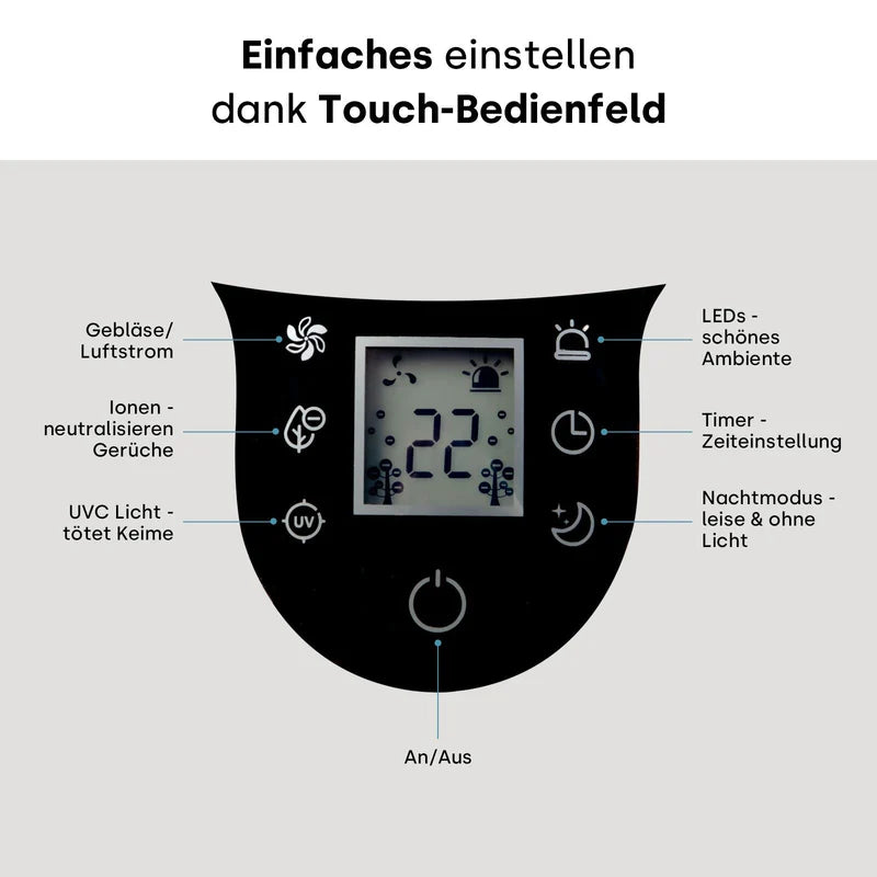 Dieses Gefühl der Frische kann der emmi-Air Ionen Luftreiniger fördern. Rotation sorgt für die Beseitigung von Staub bzw. Bakterien und Gerüche können aus der Umgebungsluft entfernt werden. Vorhandene Ionen in der Raumluft können das Wohlbefinden verbessern. Ionisierte Luft soll besser von der Lunge aufgenommen werden, da Staubpartikel durch die negative Aufladung schwerer werden und auf den Boden sinken. Daher ist der emmi-Air Ionen Luftreiniger auch besonders für Allergiker geeignet.