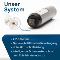 Ein weiteres Highlight ist das intelligente 4-Pin-System, das für eine besonders effiziente Ultraschallübertragung sorgt und gleichzeitig eine smarte Kommunikation zwischen Zahnbürste und Bürstenkopf ermöglicht. Dadurch wird die Reinigungsleistung gezielt optimiert.