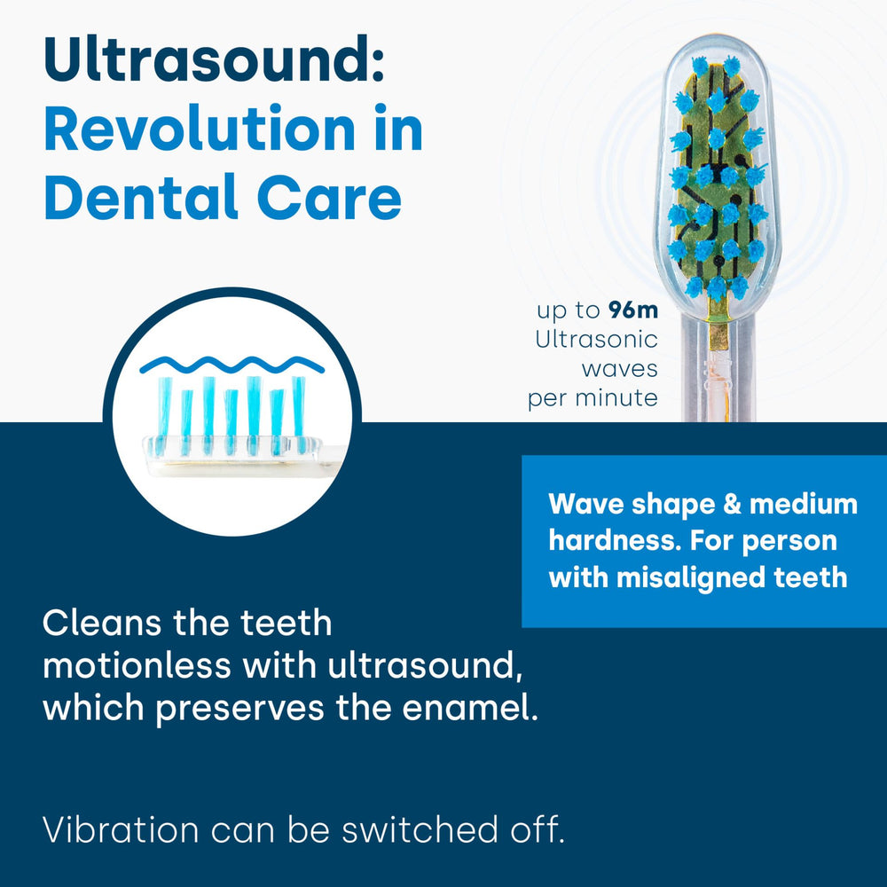 This ultrasonic brush head should be replaced after 3 months of use at the latest. After this period, the ability of the bristles to transmit 100% of the ultrasound weakens and optimal tooth cleaning and oral hygiene is no longer guaranteed.