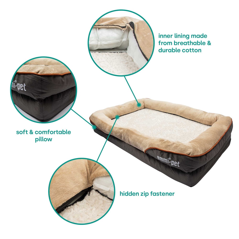 After a long day full of adventure, your dog deserves a relaxing and restful break. With the orthopedic dog bed from emmi-pet, you can offer your darling just that. This dog bed adapts perfectly to the shape of your dog's body and ensures high comfort and a restful sleeping experience.
