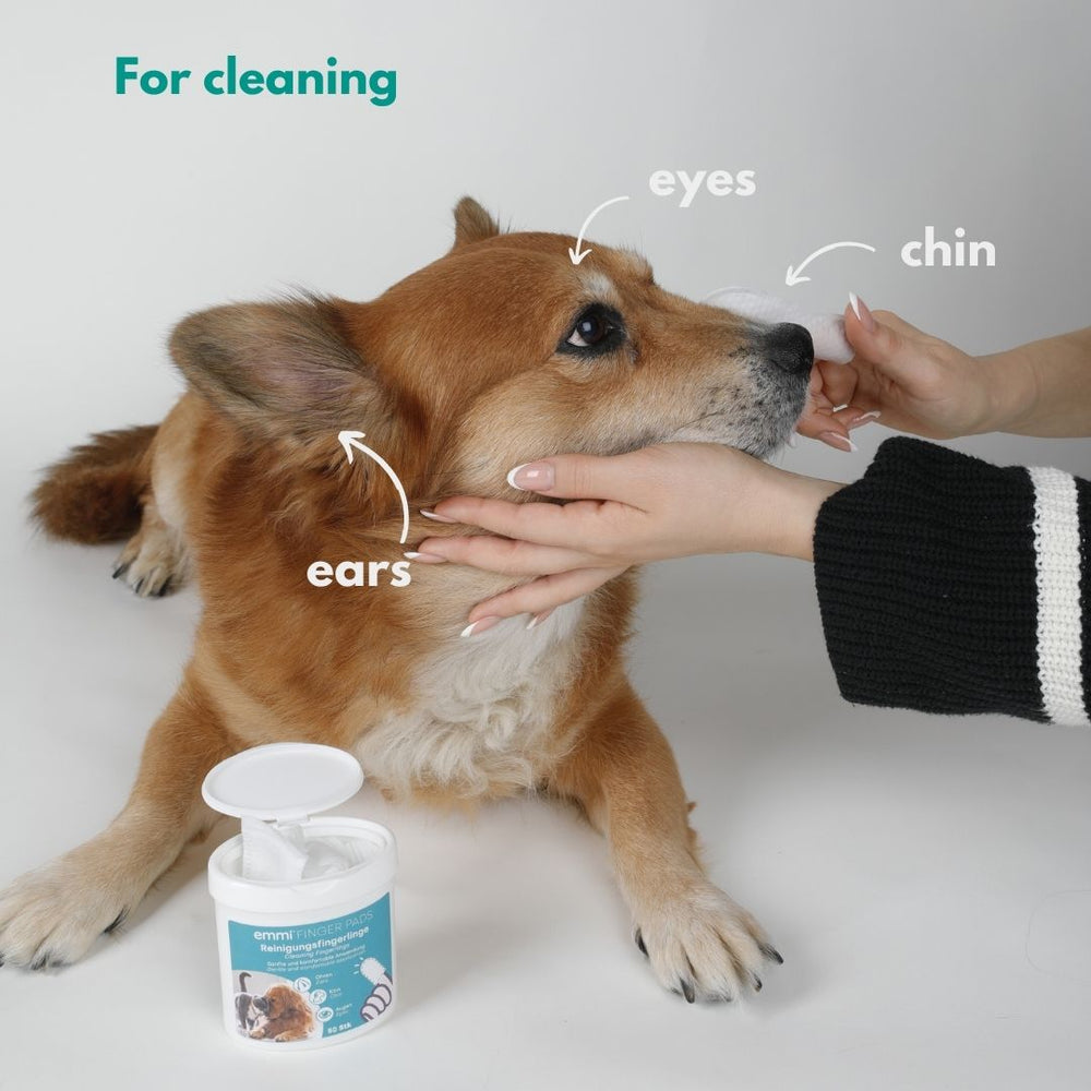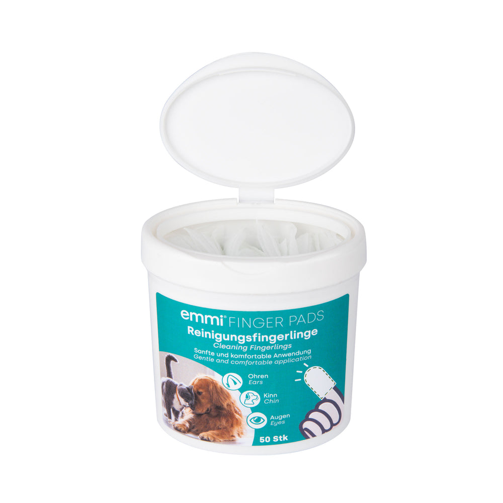 Discover our innovative emmi-pet cleaning finger cots for pets, which have been specially developed to make it easier to care for ears, chin and eyes. The high-quality finger cots made of soft nonwoven fabric effectively clean dirt and help your beloved pet to stay clean. Sensitive areas are thoroughly cleaned thanks to the soft surface of the cleaning cloths.