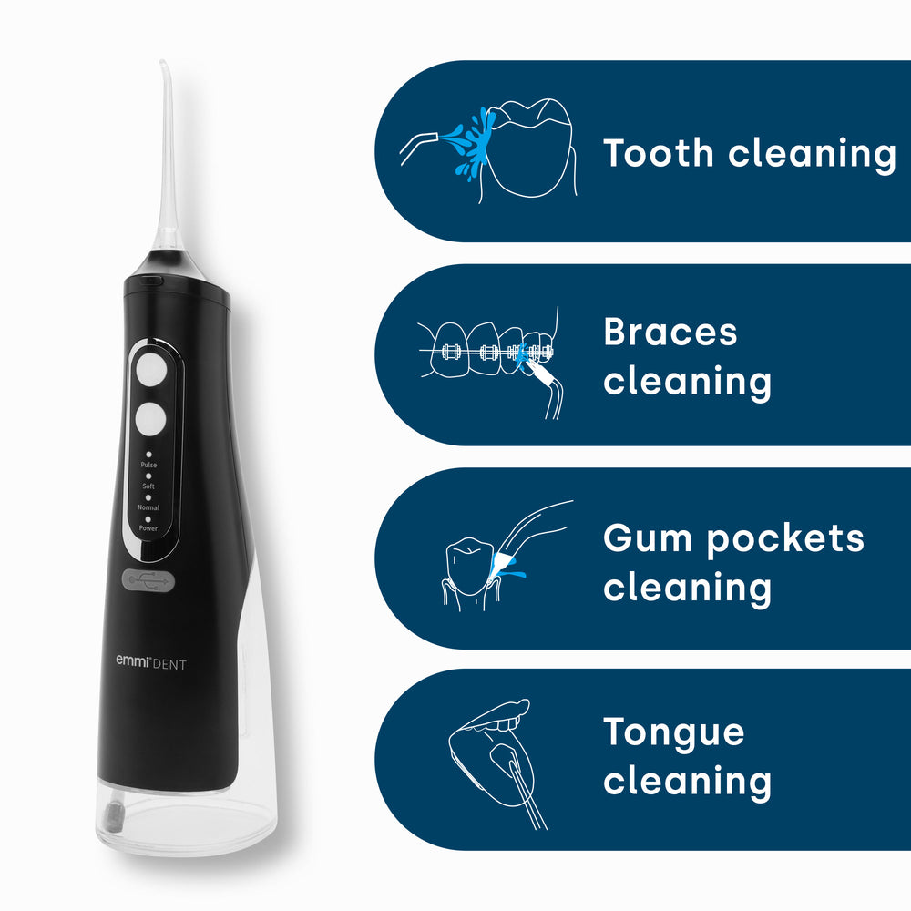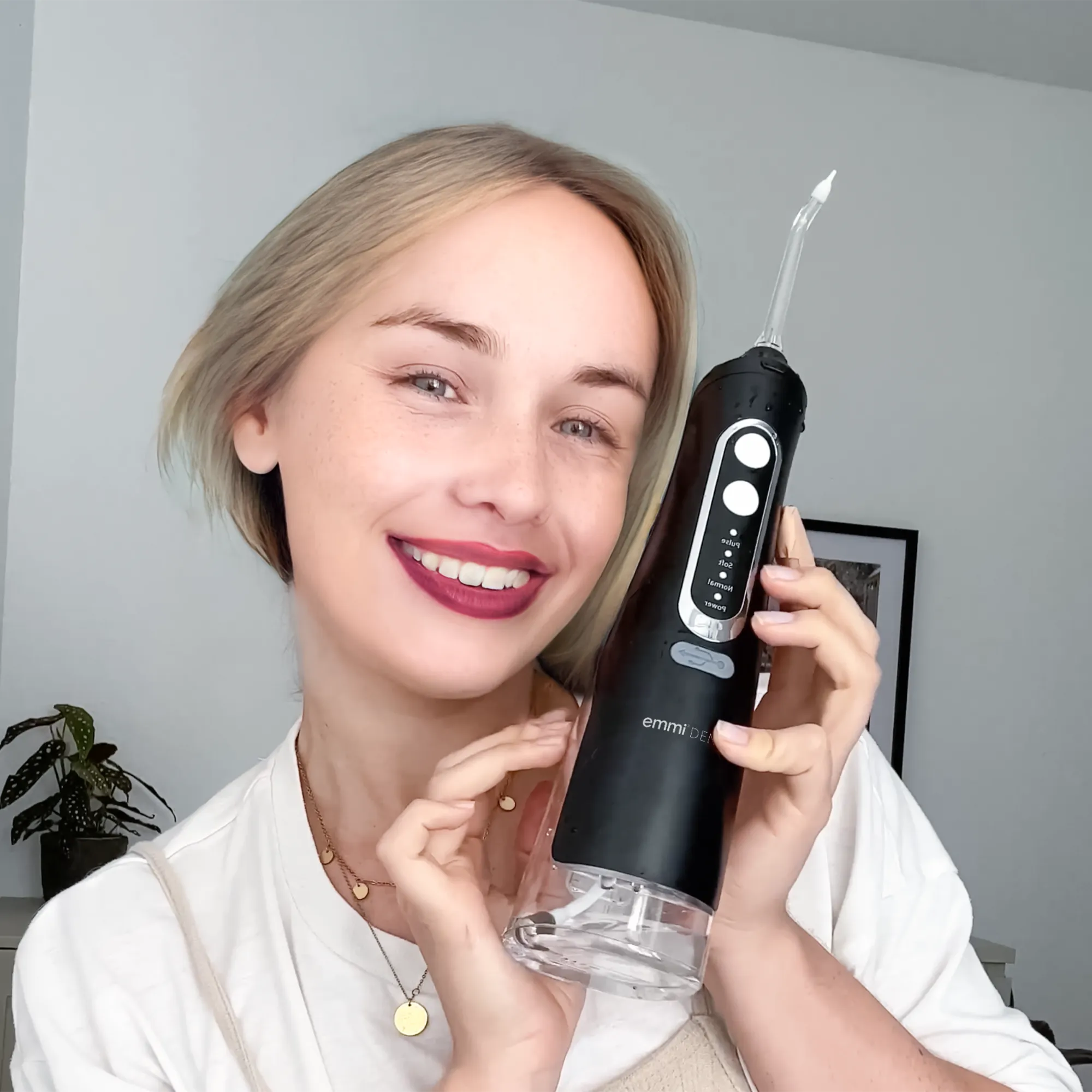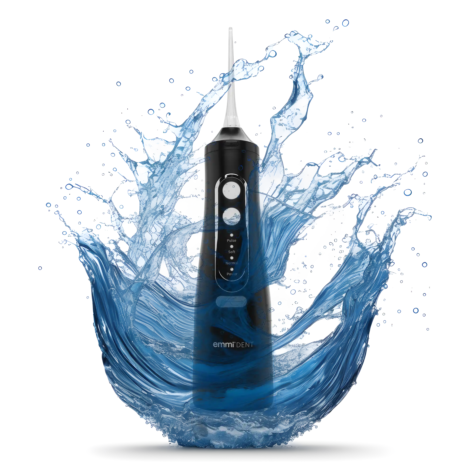 By the way: The electric oral irrigator from emmi-dent has a practical water tank that is simply filled before use. This saves you the hassle of handling cables in your mouth. However, it is important that the water in the tank is replaced regularly and that the tank is also cleaned thoroughly again and again. This way you prevent bacteria from collecting inside the housing.