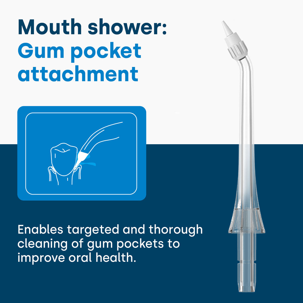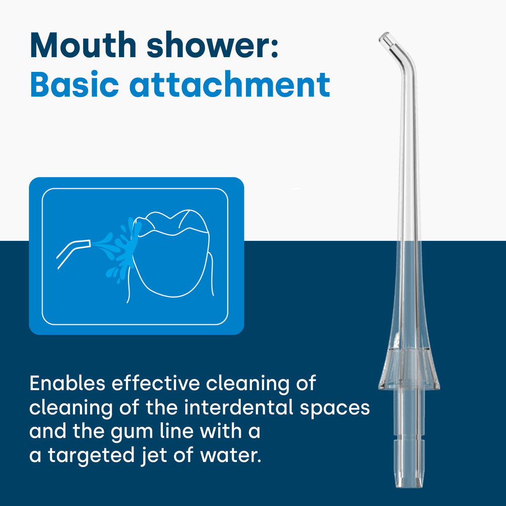 We have the perfect nozzle attachment for every application! With the four nozzle attachments included, you have the right nozzle to hand for every cleaning. Whether braces, bridges or implants, the oral irrigator is ideal for removing deposits in the gaps between teeth or other hard-to-reach places.