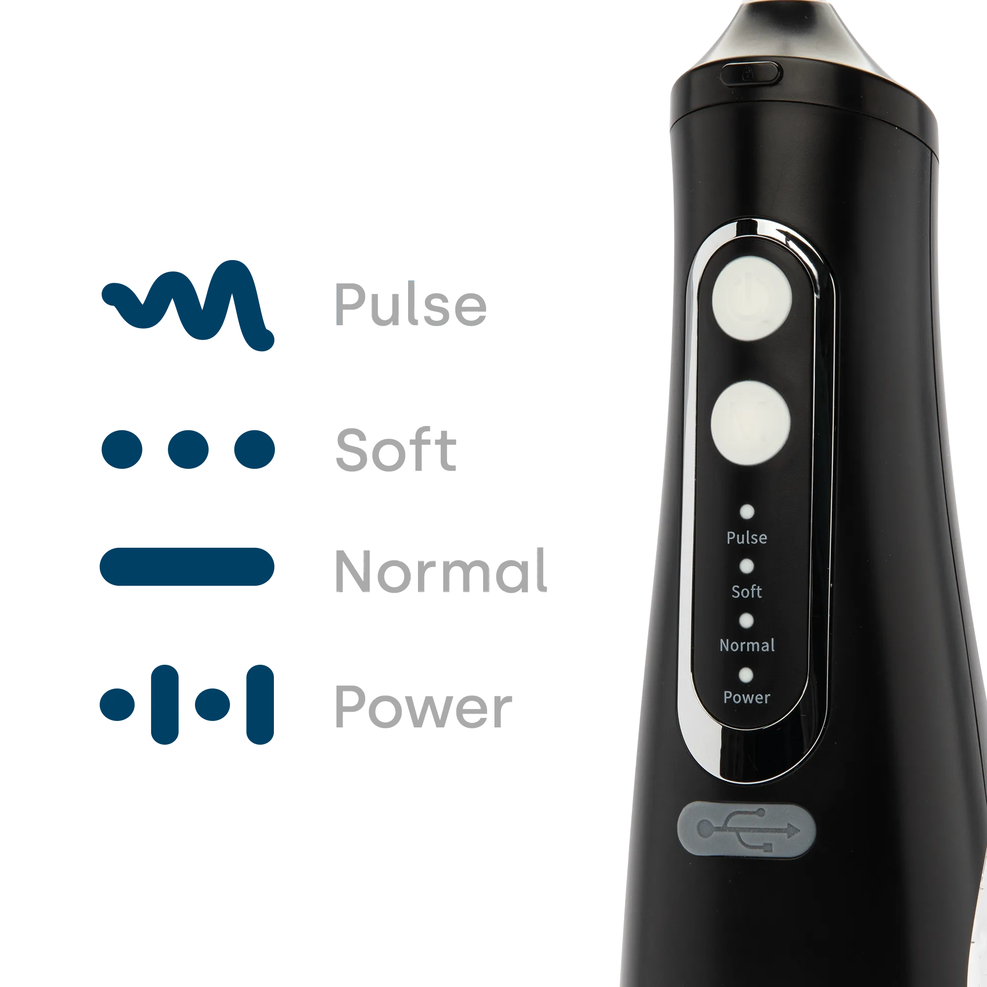 Pulse, gentle, normal and strong - choose the water pressure that suits your teeth and gums. The normal mode provides an efficient water jet for daily rinsing in the morning and evening. The soft mode ensures gentle but effective cleaning.