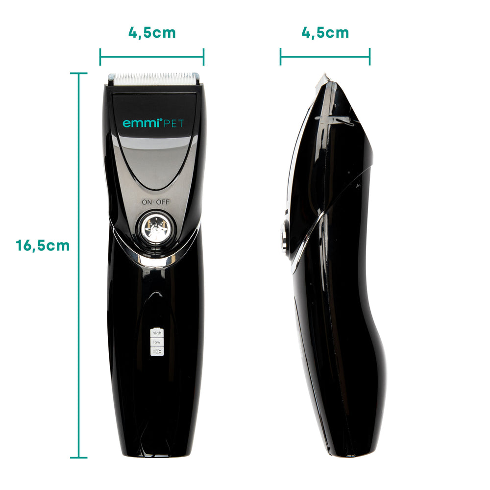 Pre-brushing, clipping and grooming - using our clipper is that easy. Brush your pet's fur thoroughly before clipping to remove knots and mats. This makes clipping easier and ensures an even result. Then move the clipper slowly and evenly over the fur. The hair trimmer has 3/6 mm and 9/12 mm comb attachments that allow precise adjustment and fine work depending on the desired cutting length. After clipping, use a mild shampoo to care for the fur after clipping and to avoid skin irritation.
