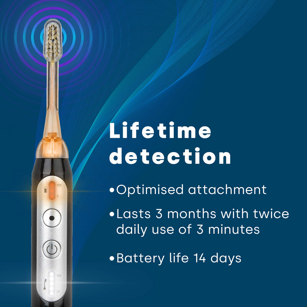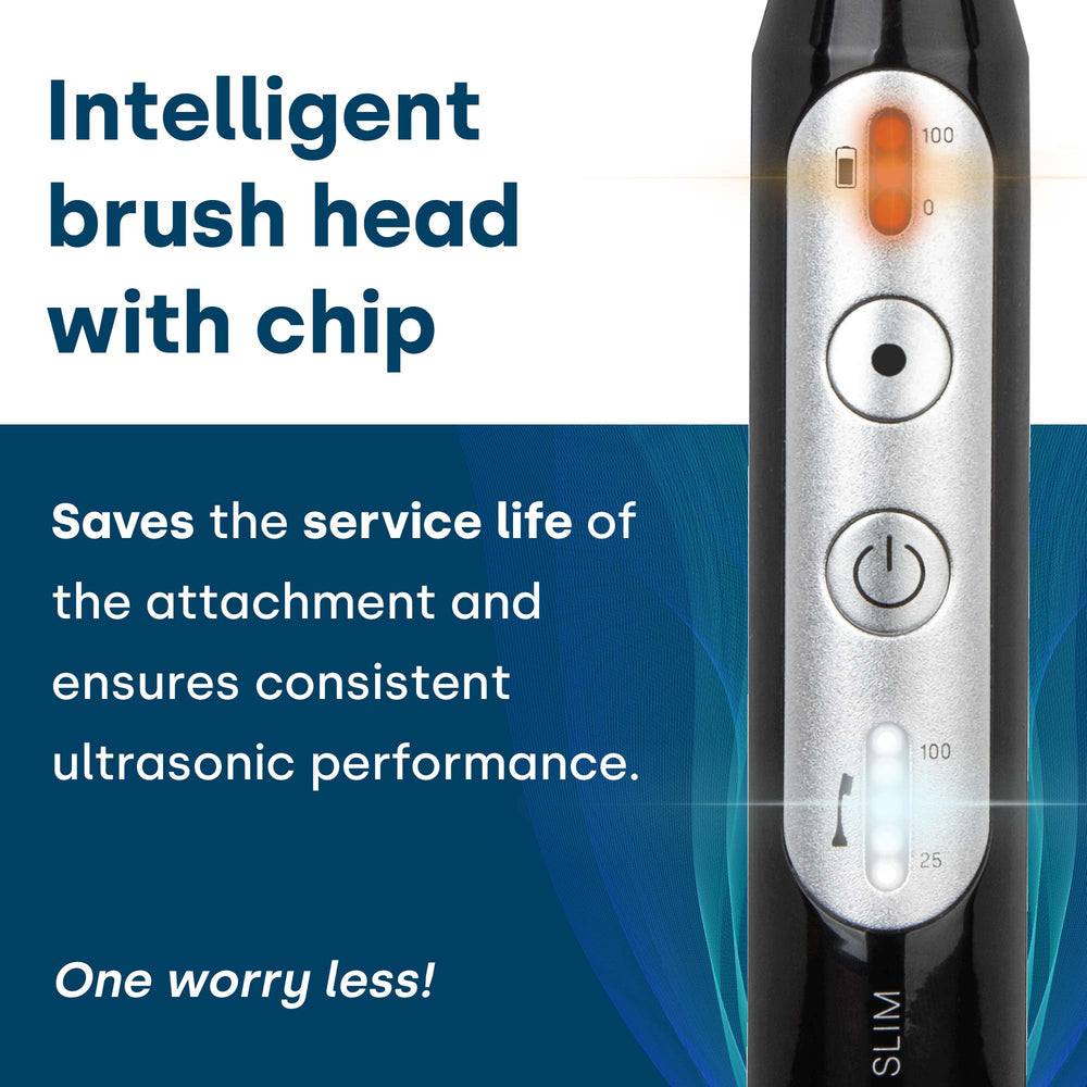 Our ultrasonic toothbrushes are equipped with intelligent brush heads that contain a patented piezo chip to provide outstanding cleaning performance and effectively remove impurities and deposits in the mouth.