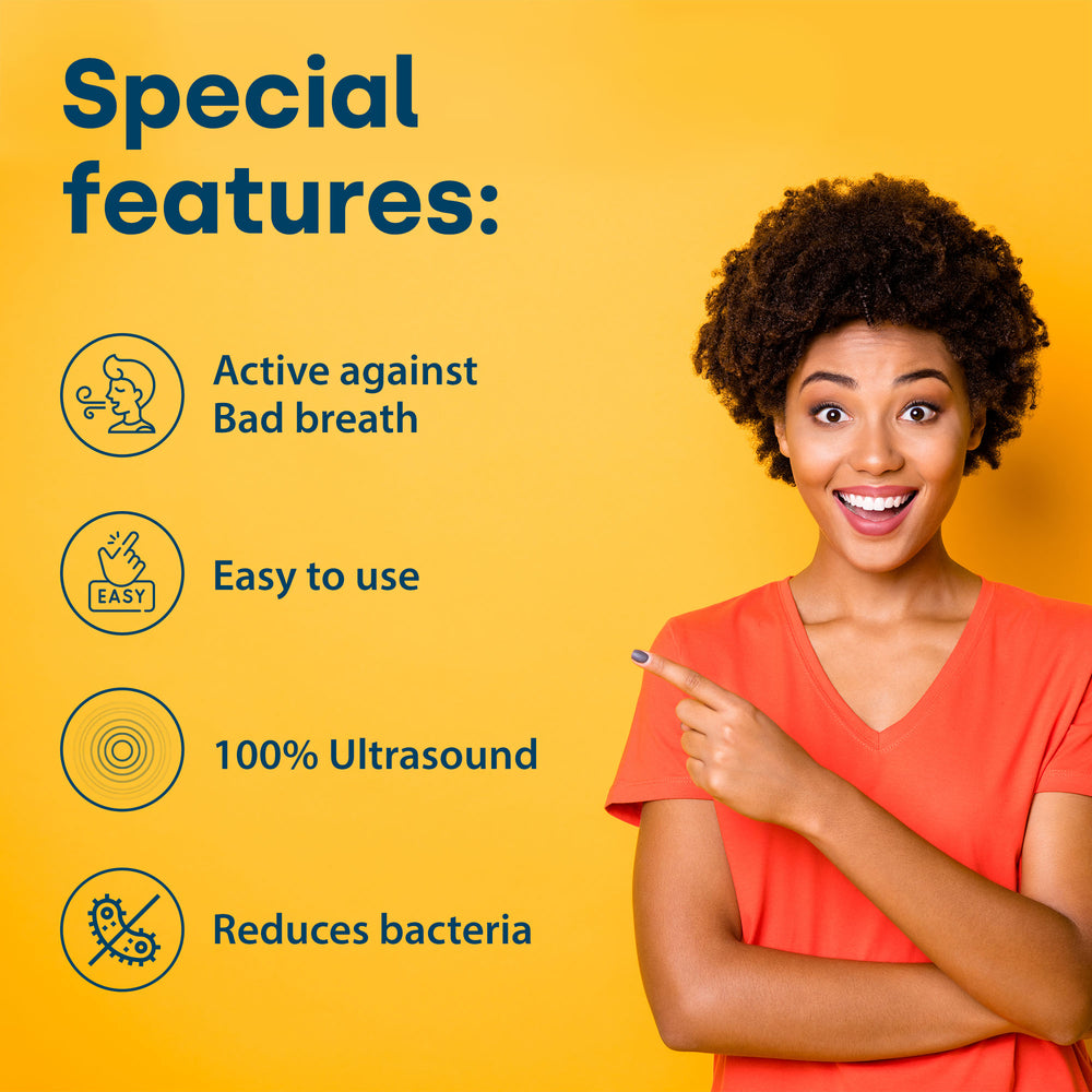 An ultrasonic toothbrush promotes professional dental hygiene on a daily basis. 100% ultrasound helps combat diseases of the teeth and gums, such as periodontitis, caries or periodontal pockets.