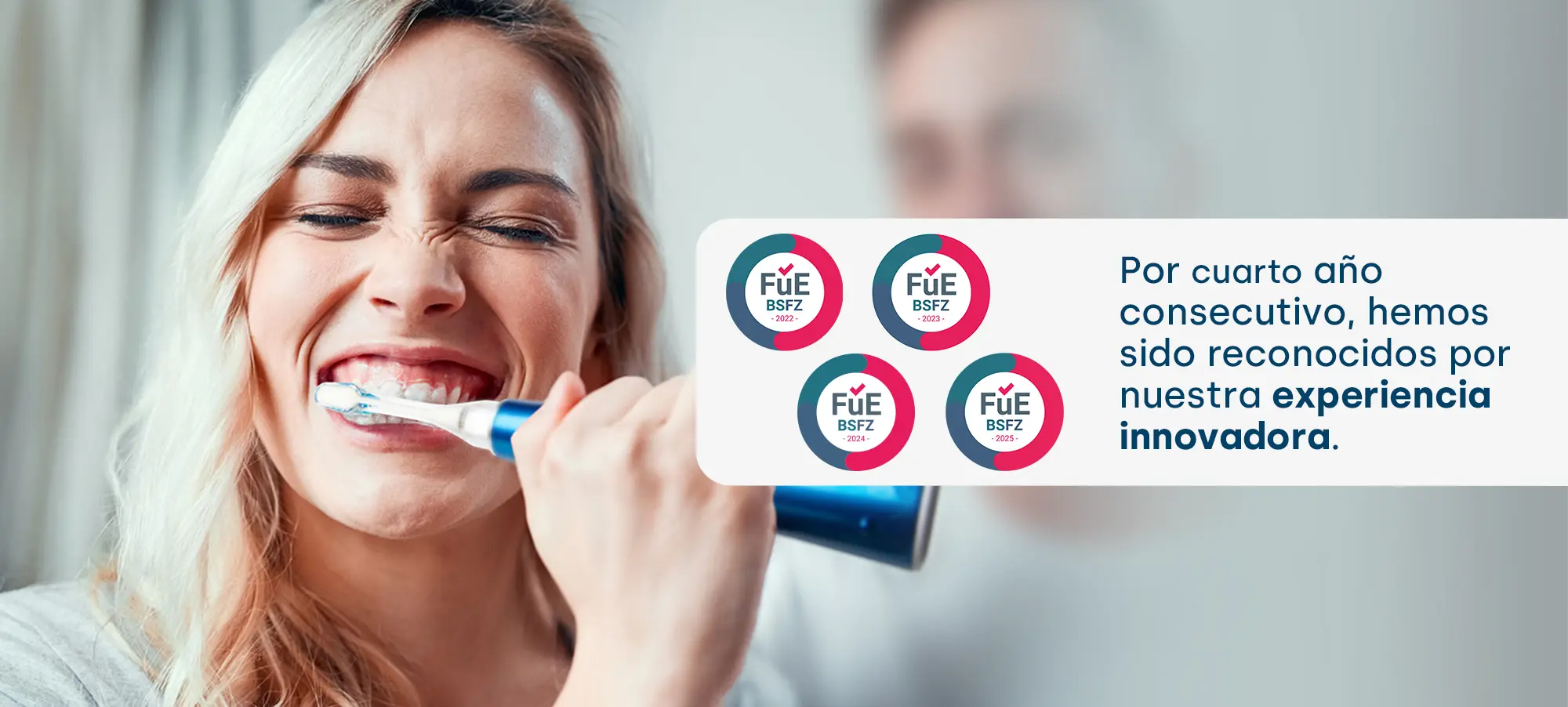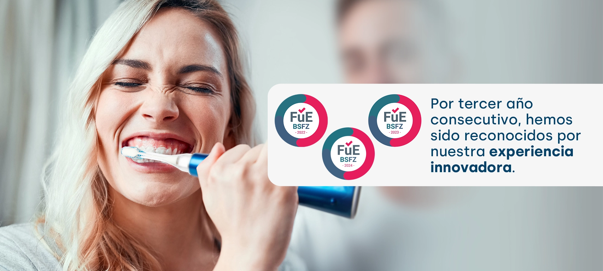 Las personas mayores y aquellas con discapacidad motriz también se benefician del sencillo manejo del cepillo de dientes ultrasónico. Recomendamos emmi-dent Platinum Care . ¡Obtuvimos el certificado EURECERT ! El primer cepillo de dientes certificado sin barreras del mundo.