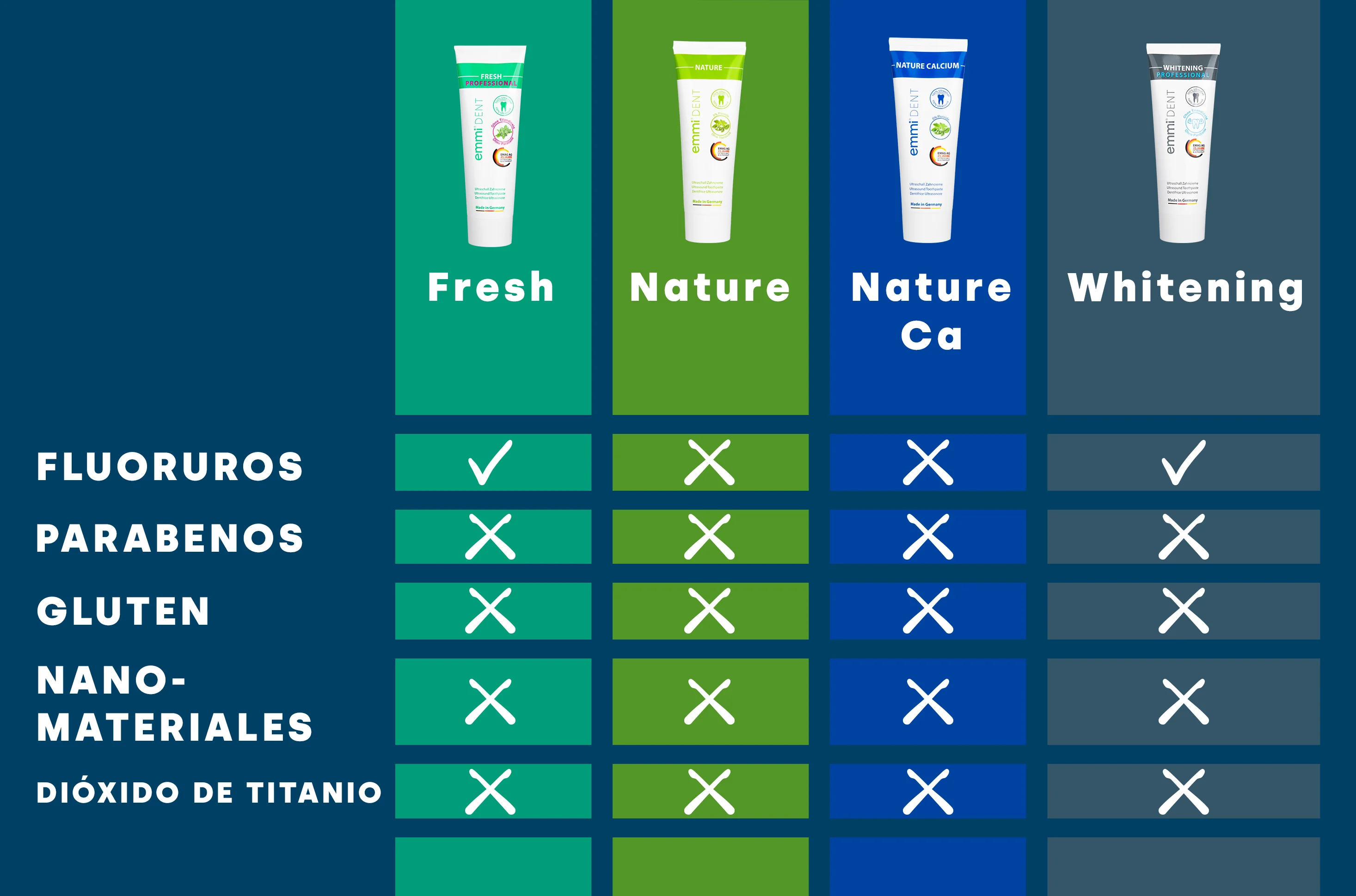 Naturaleza - La pasta de dientes ultrasónica Nature de emmi-dent ha sido desarrollada especialmente para aquellos que prefieren no contener flúor. Limpia suavemente y con cuidado tus dientes y encías. Disfrute de una experiencia de limpieza natural.
