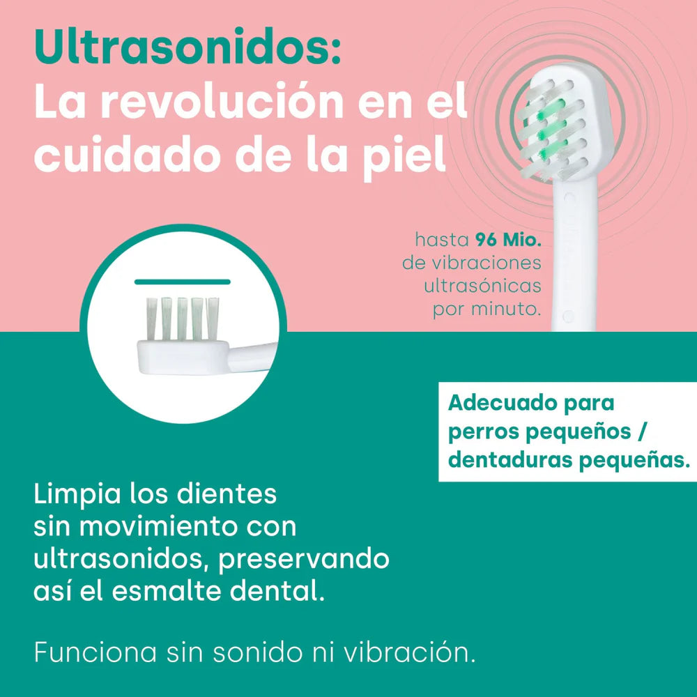 ¡Mantenga la salud y la sonrisa radiante de su amada mascota con el pequeño cabezal de cepillo ultrasónico emmi-pet ! Especialmente desarrollado para el cuidado dental de los animales, este innovador cabezal de cepillo es la solución ideal para limpiar en profundidad los caninos y molares de su mascota, garantizando unos dientes fuertes y una salud preventiva.