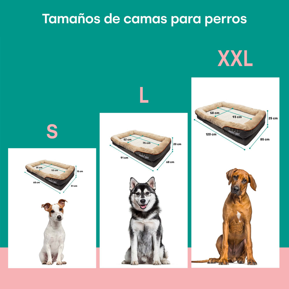 La cama ortopédica para perros emmi-pet está disponible en tres tamaños, para que tanto los perros pequeños como los grandes puedan encontrar el lugar perfecto. Las dimensiones exactas son: