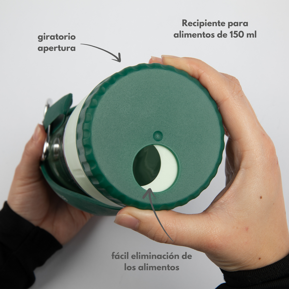 - Abastecimiento completo: agua y snacks en una sola botella: ideal para llevar.