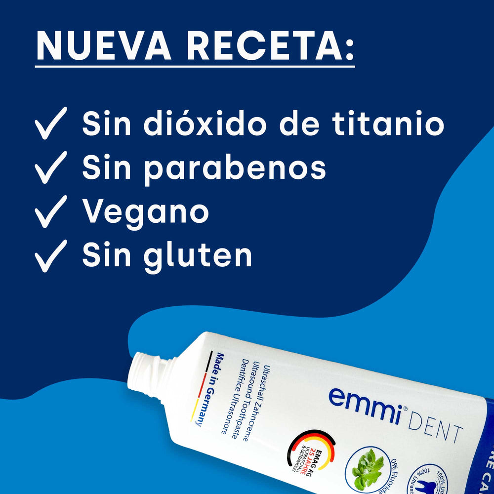 La pasta de dientes ultrasónica con calcio Nature emmi-dent le ofrece un cuidado natural y eficaz que limpia y fortalece suavemente sus dientes. Gracias al calcio que contiene tus dientes se fortalecen y son más resistentes a las caries. Disfrute de los beneficios de la pasta dental sin flúor para una sonrisa sana y fuerte.