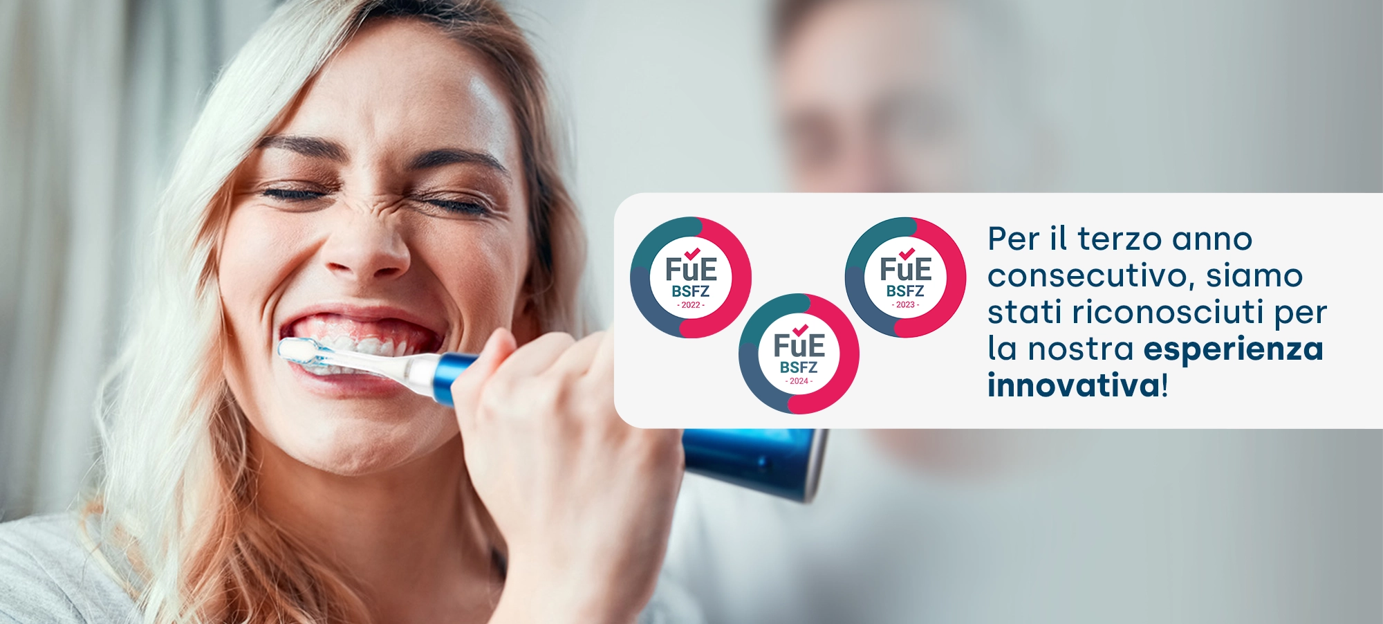 La differenza fondamentale risiede nel metodo di pulizia dei denti: come gli spazzolini manuali, anche gli spazzolini rotanti e sonici puliscono i denti meccanicamente. Questo tipo di pulizia comporta il rischio di lesioni alle gengive e allo smalto dei denti se lo spazzolino viene usato in modo improprio. Inoltre, gli ultrasuoni sono in grado di ridurre al minimo l'infiammazione gengivale, come confermato dal nostro studio (gengivite) .