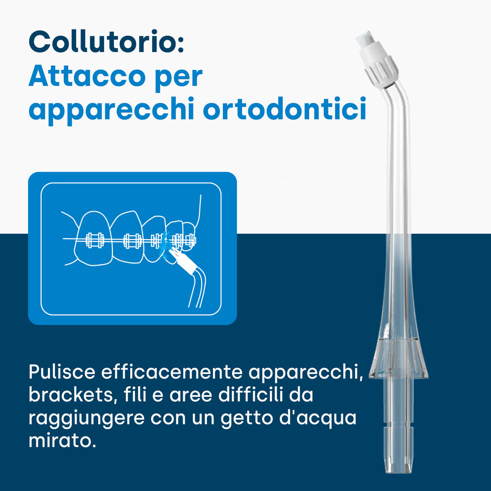 Adatto per la pulizia di apparecchi ortodontici o altri dispositivi dentali. L'accessorio è progettato per rimuovere batteri nascosti, accumuli, nonché sporco morbido e residui di cibo. Adatto per la cura dentale quotidiana.
