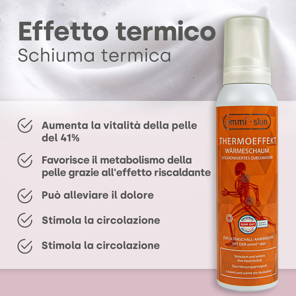 Nei test sul campo condotti negli ultimi 4 anni, è stato dimostrato uno straordinario effetto anti-invecchiamento con l'utilizzo di emmi-skin (in combinazione con la crema gel all'acido ialuronico per ultrasuoni ). Grazie all'effetto antibatterico degli ultrasuoni, anche i dolori articolari e muscolari (in combinazione con l' effetto termico ) guariscono più velocemente. Si riducono le impurità della pelle come punti neri, acne, brufoli e anche le infezioni fungine. In poco tempo la pelle spenta e stressata torna ad essere bella e sana.