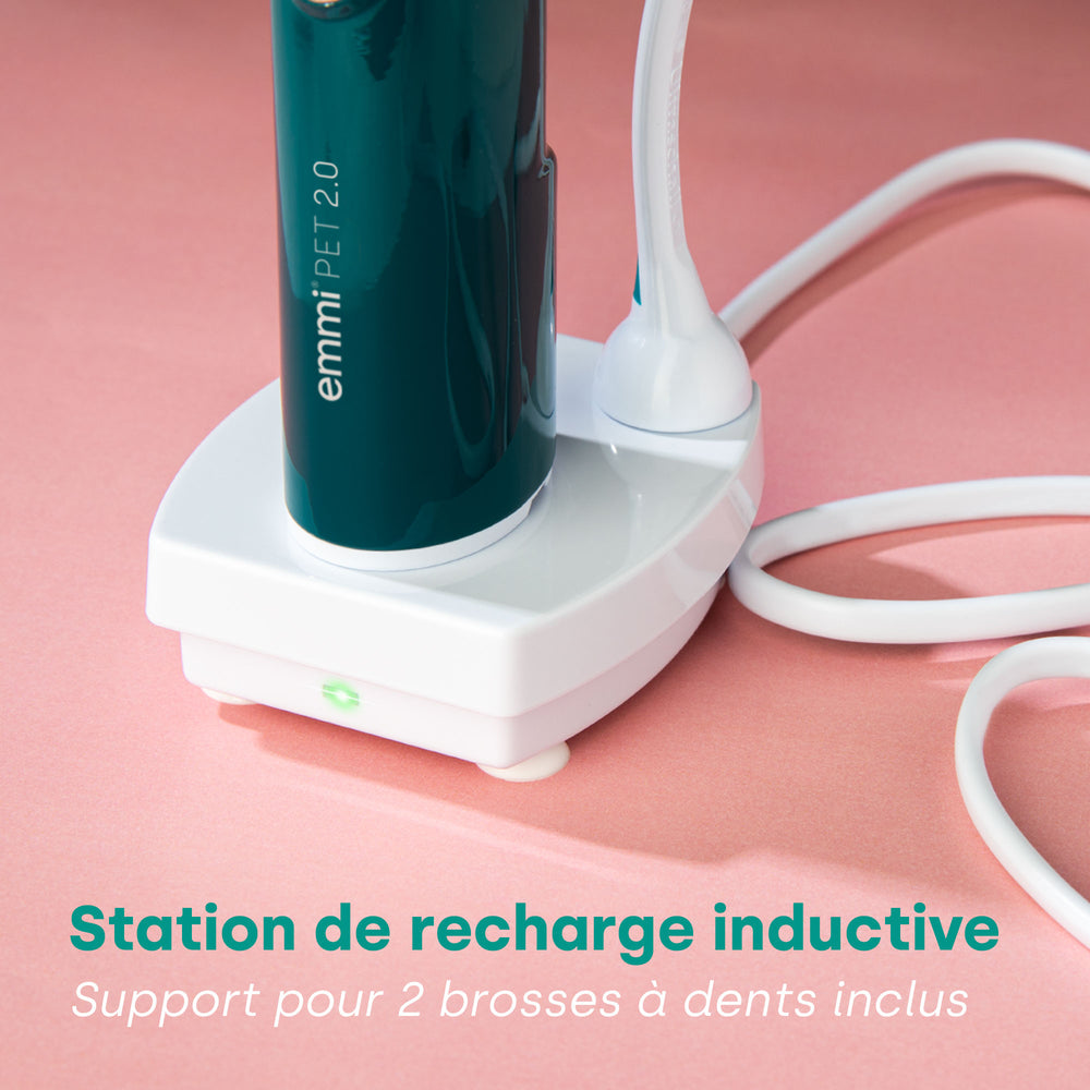 L'emmi-pet 2.0 est basé sur une technologie ultrasonique brevetée (jusqu'à 96 millions de vibrations ultrasoniques par minute) et, lorsqu'il est utilisé régulièrement, prévient efficacement le tartre et réduit la plaque dentaire. Une utilisation régulière prévient non seulement la formation de plaque dentaire, mais masse et renforce également les gencives et réduit l'inflammation des gencives existante.
