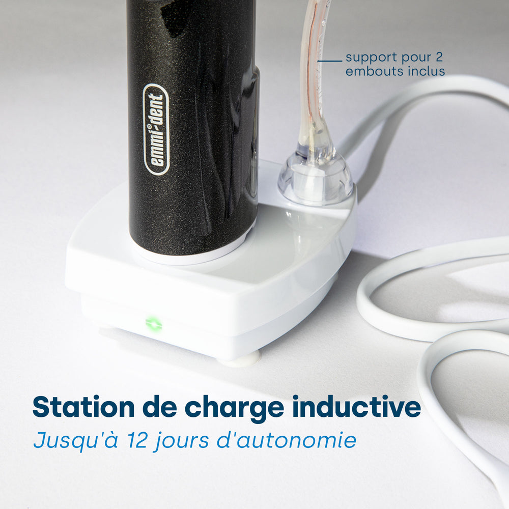 Grâce à la technologie à ultrasons sans abrasion, l'emmi-dent Metallic est particulièrement adapté aux personnes ayant des gencives sensibles, des implants, des appareils dentaires ou des maladies dentaires telles que la parodontite. Les vibrations douces nettoient en profondeur sans irriter les dents ni les gencives. Cela maintient vos dents en bonne santé tout en protégeant votre émail.