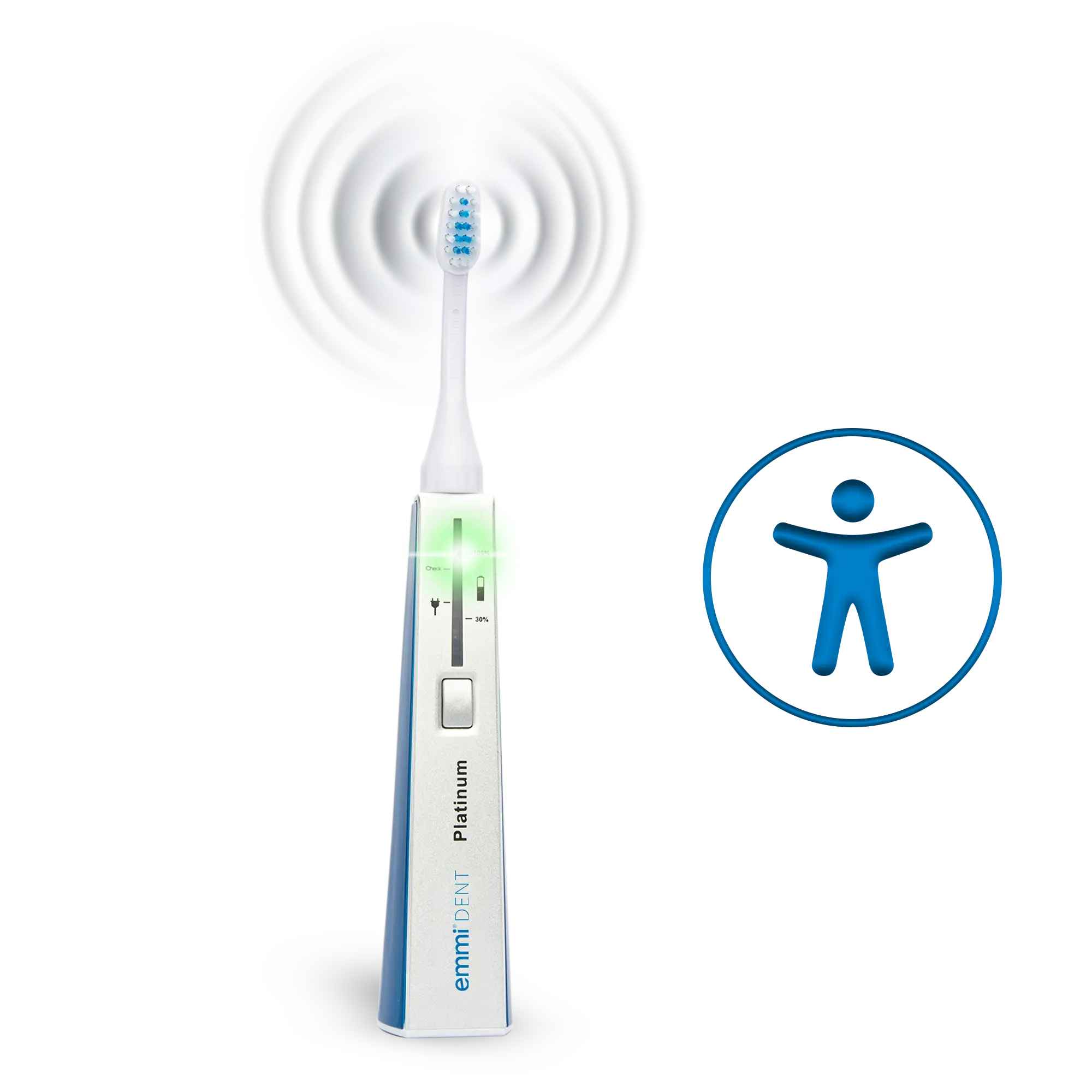Contrairement à nos autres brosses à dents à ultrasons, notre emmi-dent Platinum Care impressionne par son accessibilité.